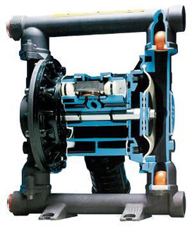 氣動雙隔膜泵通過行程機械拉動吸入隔膜的移動氣動雙隔膜泵的內(nèi)板與對準的驅(qū)動柱塞發(fā)生接觸,移動導向閥芯。導向閥激活后,便向主定向氣閥的另一端發(fā)出壓力信號,氣動雙隔膜泵使壓縮空氣方向改向內(nèi)部腔室的另一側(cè)如此反復運動完成介質(zhì)的連續(xù)輸送。